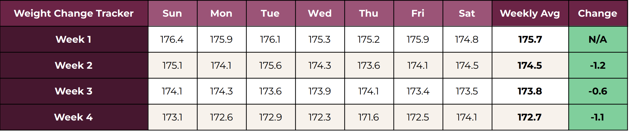 As stated previously, weight fluctuation can give an inaccurate representation of progress. Let's focus on week four from the example above: